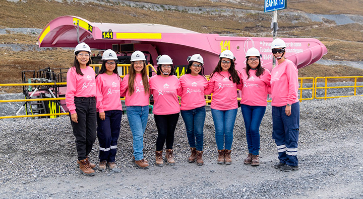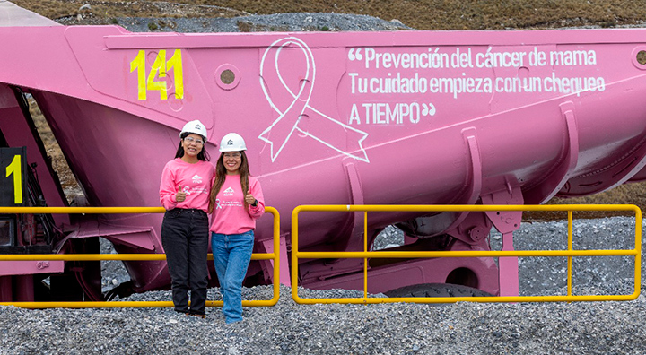 Este año, Antamina se suma a la campaña con el pintado de un camión rosado minero que circula por la operación, trascendiendo el espacio laboral e inspirando a los colaboradores a compartir mensajes de prevención en sus redes sociales y en sus hogares.