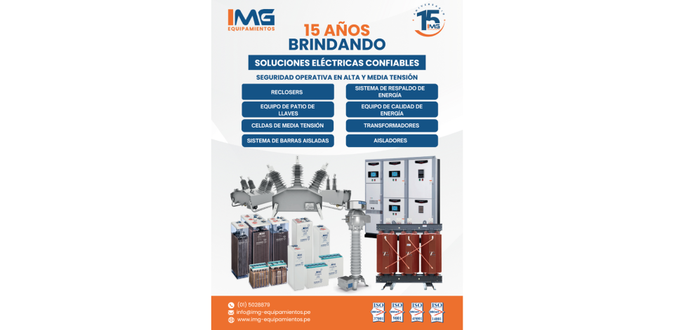 IMG Equipamientos está celebrando su 15° aniversario, reafirmando su compromiso con el desarrollo energético del país. Durante todos estos años, la empresa se ha establecido como un referente en la comercialización, instalación y servicio postventa de equipos eléctricos para subestaciones de media y alta tensión, apoyando proyectos clave con soluciones confiables y eficientes.