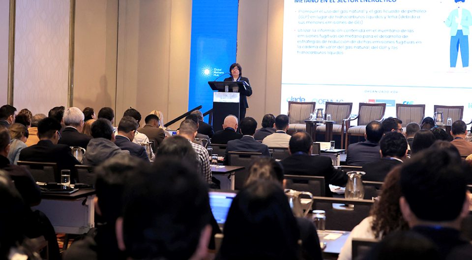 La funcionaria explicó la visión del MINEM sobre la mitigación de emisiones de metano en el sector energético y las acciones estratégicas impulsadas para cumplir sus compromisos climáticos, las cuales se basan en promover el uso del gas natural y el gas licuado de petróleo (GLP) en lugar de hidrocarburos líquidos y leña.