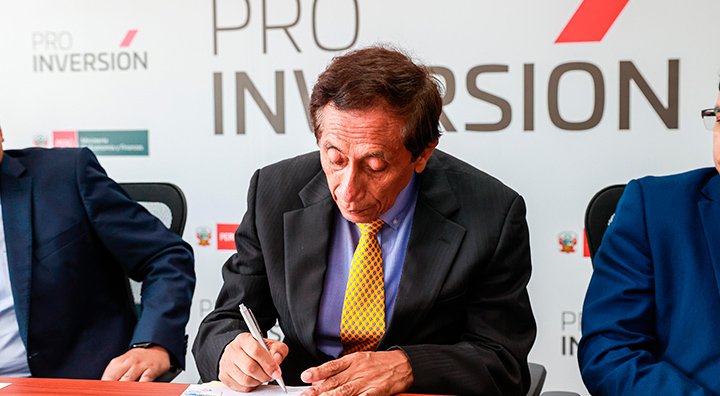El viceministro de Electricidad del Ministerio de Energía y Minas (MINEM), Víctor Carlos Estrella, participó en la firma de contratos de concesión de los proyectos: “Enlace 220 kV Aguaytía – Pucallpa, subestaciones, líneas y ampliaciones asociadas”, “Incremento de la Confiabilidad 138-60KV del Sistema Eléctrico de Tarma – Chanchamayo”, e, “Incremento de capacidad y confiabilidad (Criterio N-1) de Suministro del Sistema Eléctrico Huaraz”.