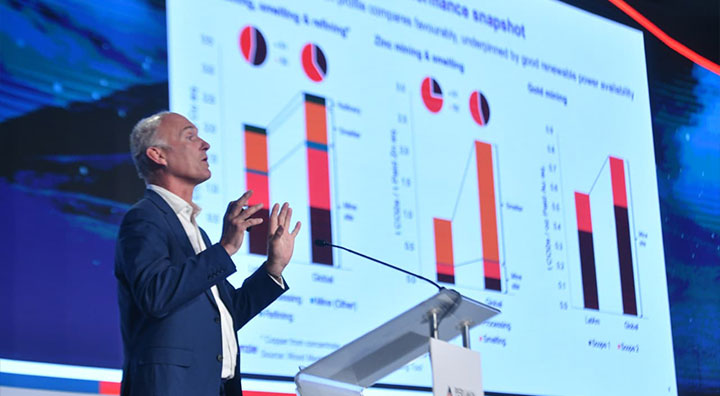 Julian Kettle, vicepresidente de Wood Mackenzie, presentó la conferencia magistral “Energías renovables a medida”, en el marco del programa Minería del Futuro. Su exposición giró en torno al papel de las energías limpias, los minerales críticos y la electrificación en la transición hacia una industria minera baja en carbono.